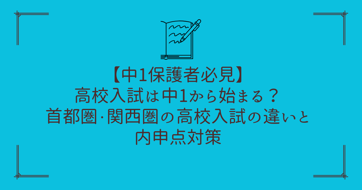 今回は『高校入試は中1から始まる?首都圏・関西圏の高校入試の違いと内申点対策』をご紹介します。首都圏と関西圏の高校入試制度の違いをわかりやすく整理しつつ、中学1年生の段階で保護者が意識しておくべきポイントを具体的に紹介します。